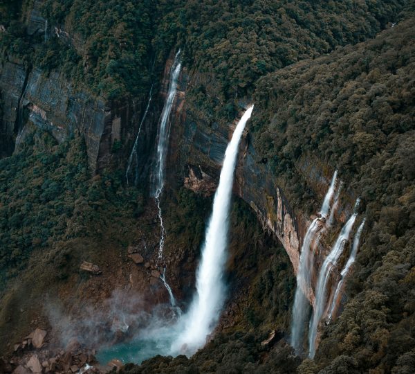 - Cherrapunji (Sohra): Famous for its record-breaking rainfall and stunning landscapes, Cherrapunji is known for attractions like the Nohkalikai Falls (one of the tallest waterfalls in India), Mawsmai Caves, and the living root bridges in the nearby village of Nongriat.